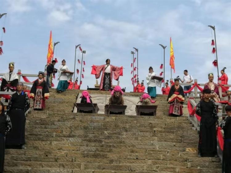 祭祖大典之后纪氏家族寻根之旅代表团参与并观看了大型祭祀节目祭天大典。祭礼在在古代被列为“五礼”之冠,就国家而言,“国之大事,在祀与戎”。春秋纪国时期的祭天已经达到十分严格的规范化程度,祭祀流程也庄重而严谨,分为斋戒、迎神、三献礼,饮福受胙、辞神等十个环节。其中饮福受胙是将供品与百姓分食,寓意“百家安康,诸事皆顺”之意。