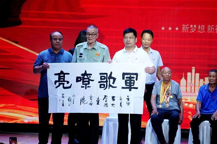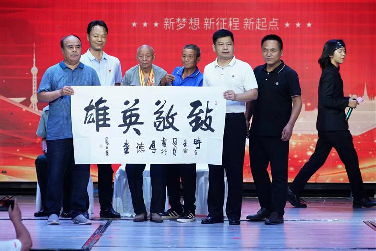 本次活动特邀了抗战老兵到场,大赛组委会携手知名书法家为老兵赠送墨宝,农特产品等。
